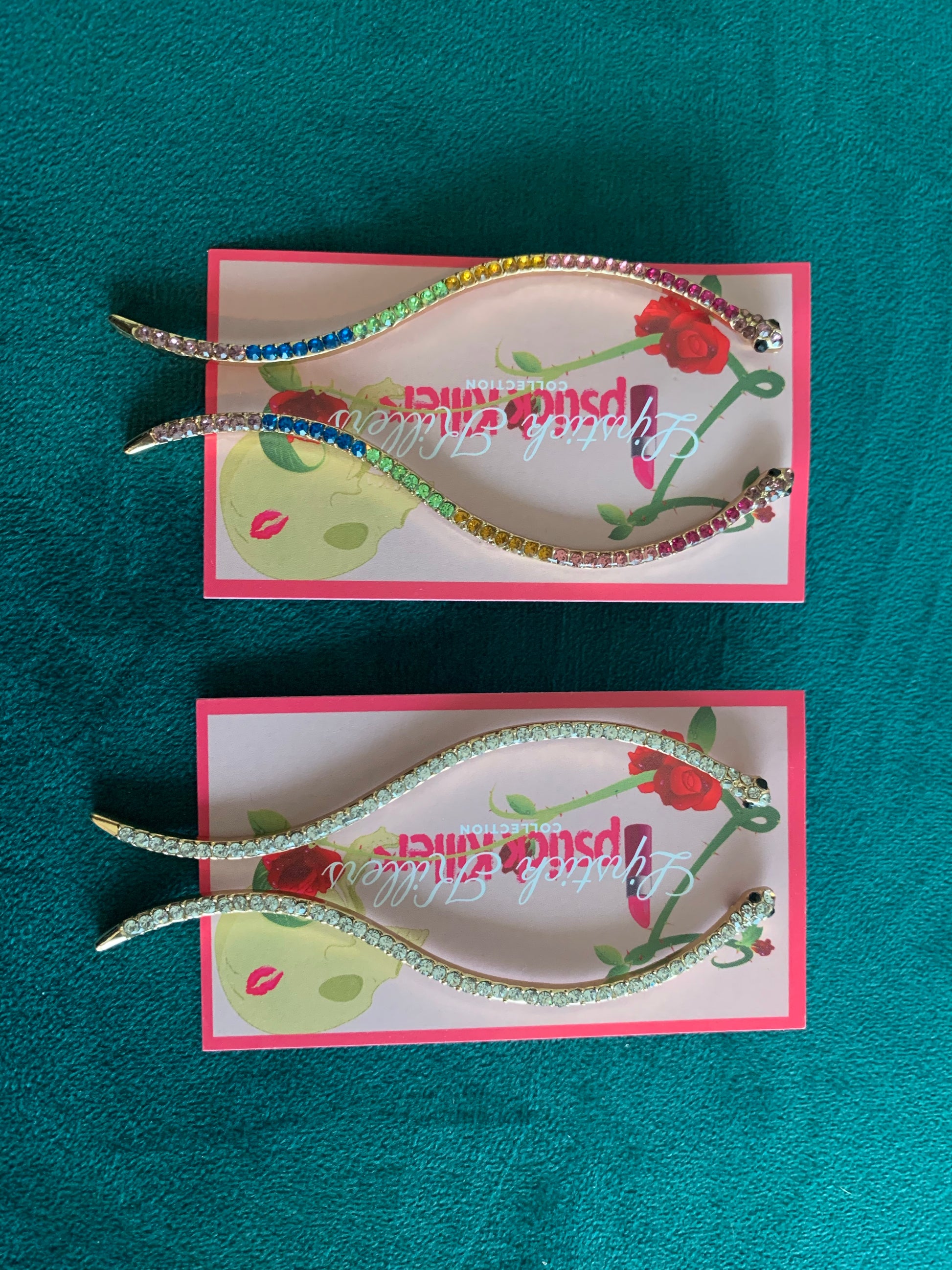 - Pair these Super Thin Snake Earrings with a leather biker jacket, ripped jeans, and combat boots for an effortlessly cool look that screams "I'm too cool for your fashion rules!"