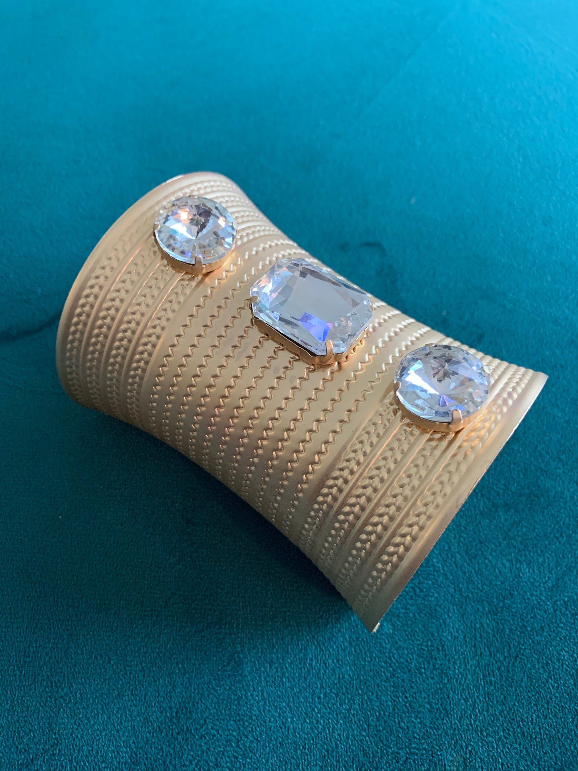 - Tags: Bracelets, Clear, Crystal, Cuff, Gold, Metal, Rhinestone, Textured